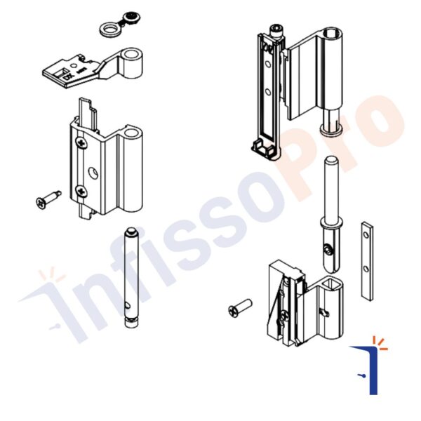 Il gruppo cerniera รจ completamente pre-assemblato e pronto per l’installazione.