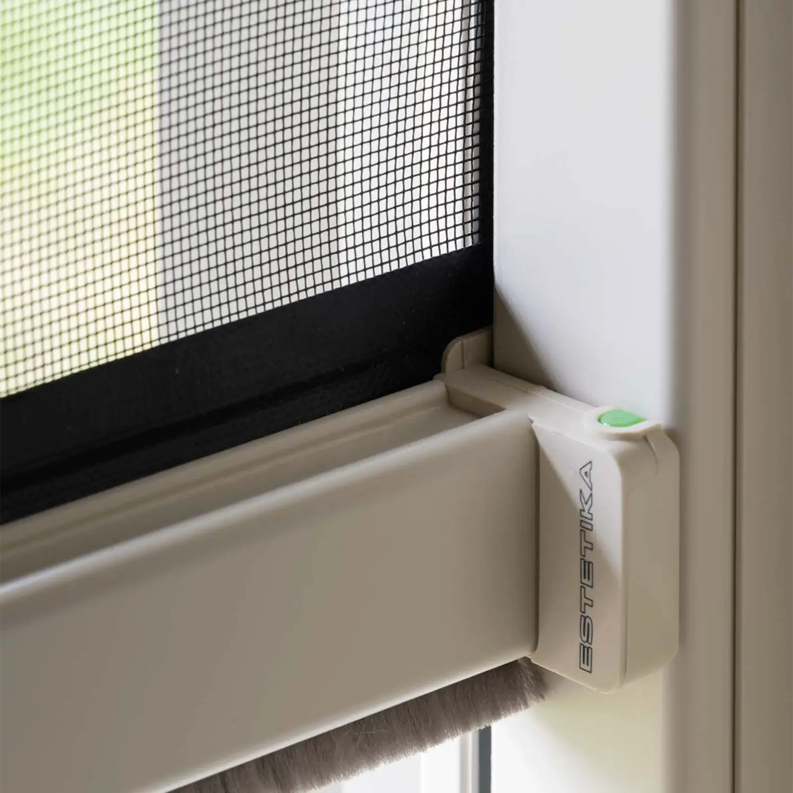 La zanzariera Bettio Estetika utilizza un cassonetto compatto con scorrimento verticale e rete tenuta in guida da appositi elementi antivento. Le regolazioni in altezza e larghezza permettono una compensazione dell’ordine di alcuni millimetri, facilitando il lavoro in presenza di pareti irregolari o non perfettamente in bolla. La guida superiore con spazzolino e i profili telescopici consentono di evitare l’uso di silicone o spessori aggiuntivi, semplificando l’installazione e la manutenzione.